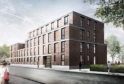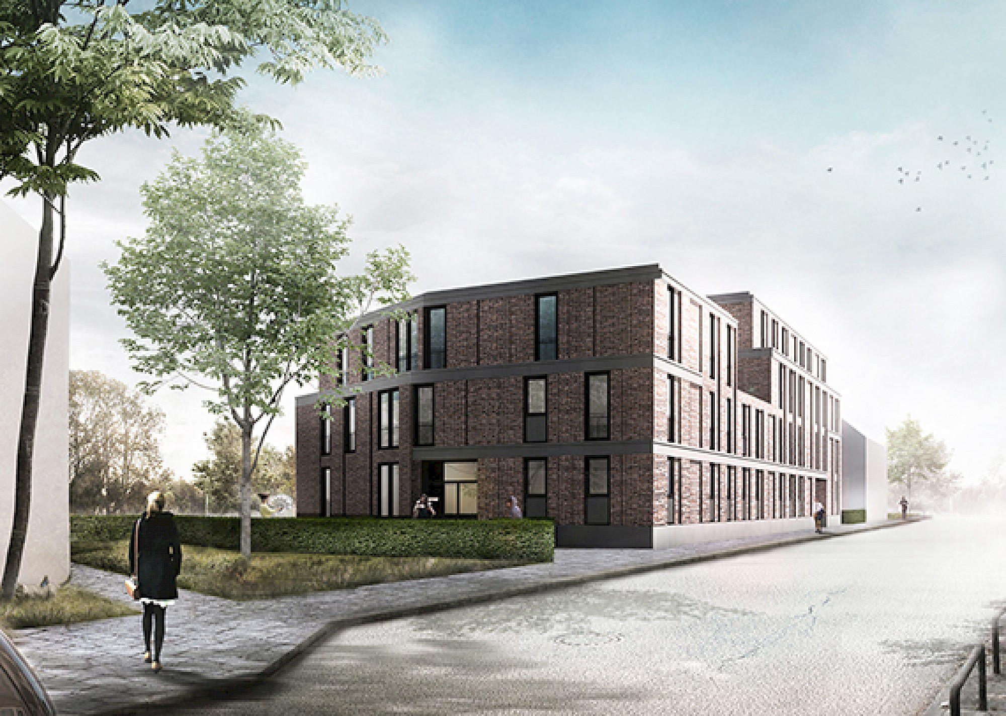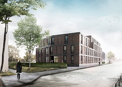 KONZEPT - Ziel des Projektes Heidhof Herne ist es, einen Wohnungsbau zu errichten, der zum einen „ein Haus wie jedes andere“ ist und zum anderen Geborgenheit, Sicherheit und Stabilität ausstrahlt. So fügt sich der neue Baukörper in die bestehende Struktur der Umgebung, ohne aber mit seinem durch das erforderliche Programm entstehende größeren Volumen, deren Maßstab zu überspringen.