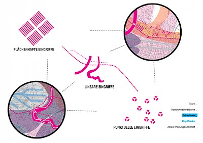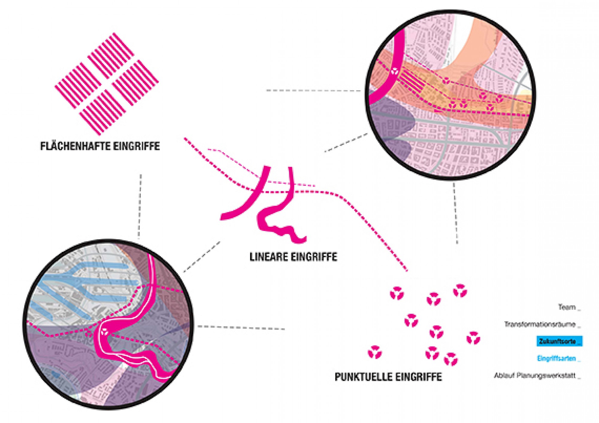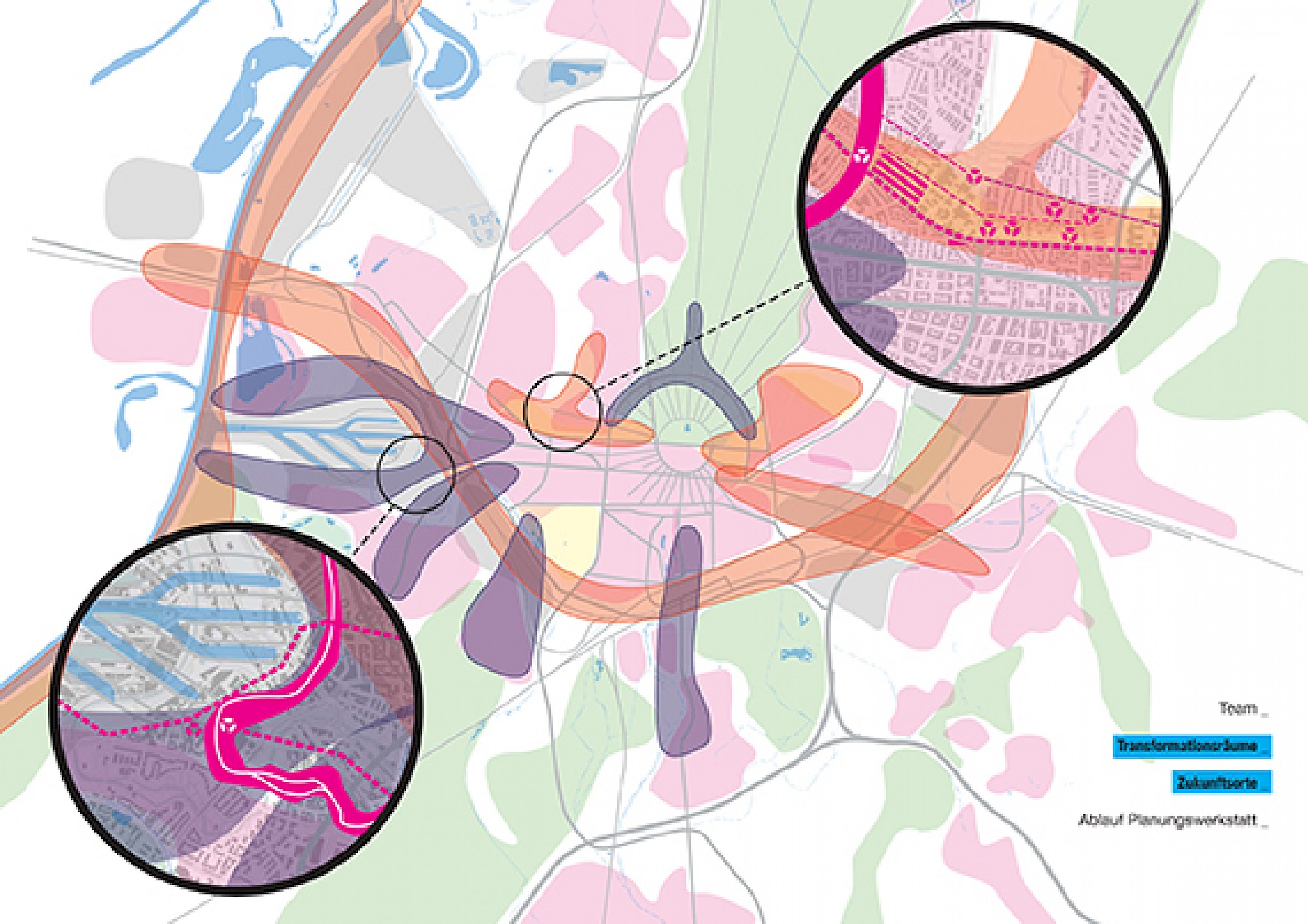 Eingeladenes Qualifikationsverfahren um den Planungsprozess, Leitbild Karlsruhe, 2013 (Engere Wahl). In Zusammenarbeit mit Polinna+Hauck landscape and urbanism und Iris Scherer.