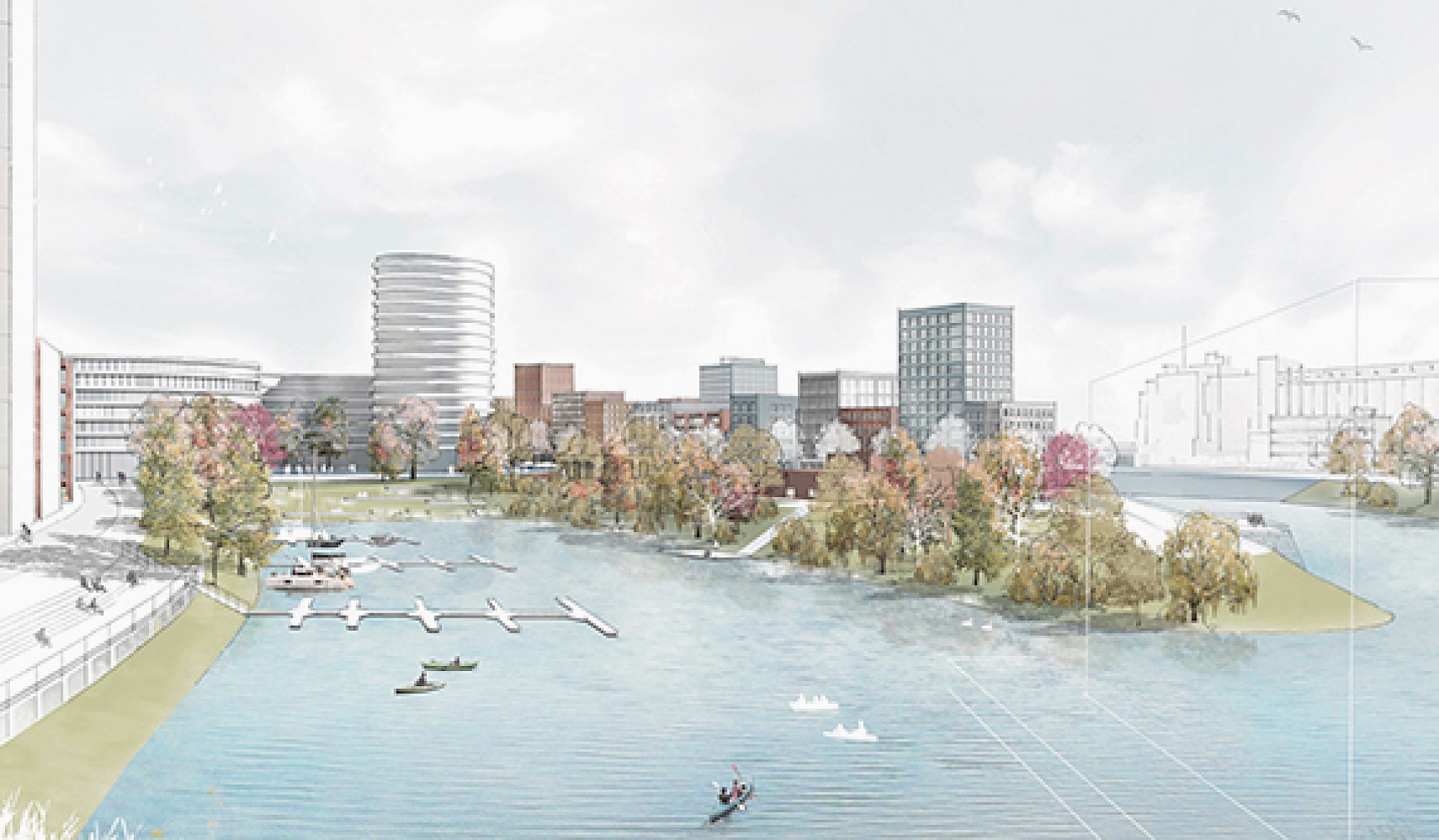 Halbinsel Kesselstraße, Düsseldorf - Revitalisierung des zweiten Hafenbeckens am Medienhafen. Nichtoffener Realisierungswettbewerb, in Zusammenarbeit mit Knüvener Architekturlandschaft, 2019