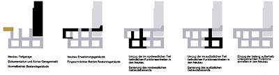 Realisierungswettbewerb zur Instandsetzung und Erweiterung des Polizeipräsidiums Düsseldorf, 2011. In Zusammenarbeit mit rheinflügel Severin und JBBUG, Johannes Böttger Büro Urbane Gestalt, Tragwerksplanung: osd Ingenieure Klaus Fäth + Harald Kloft